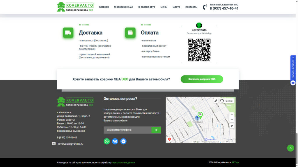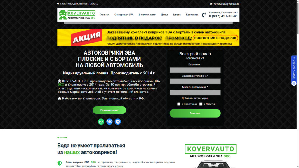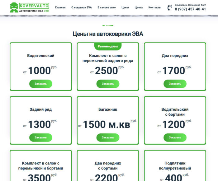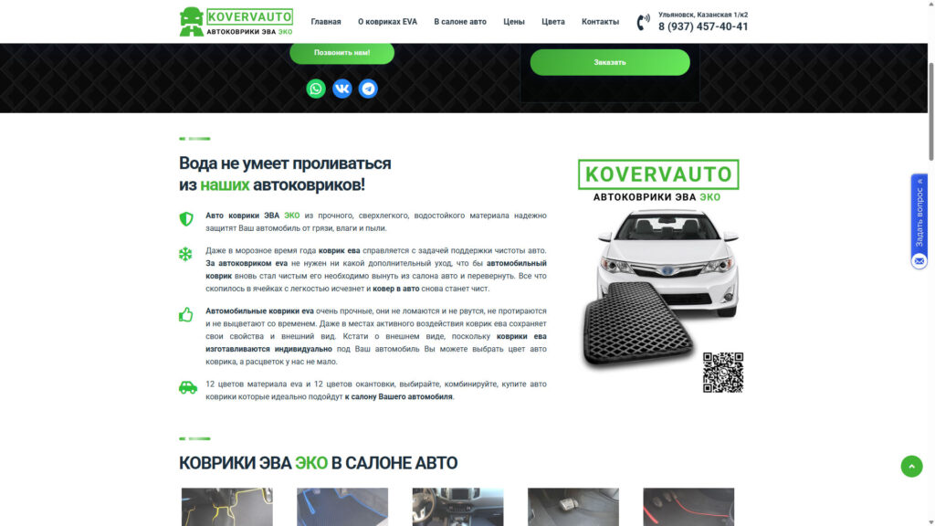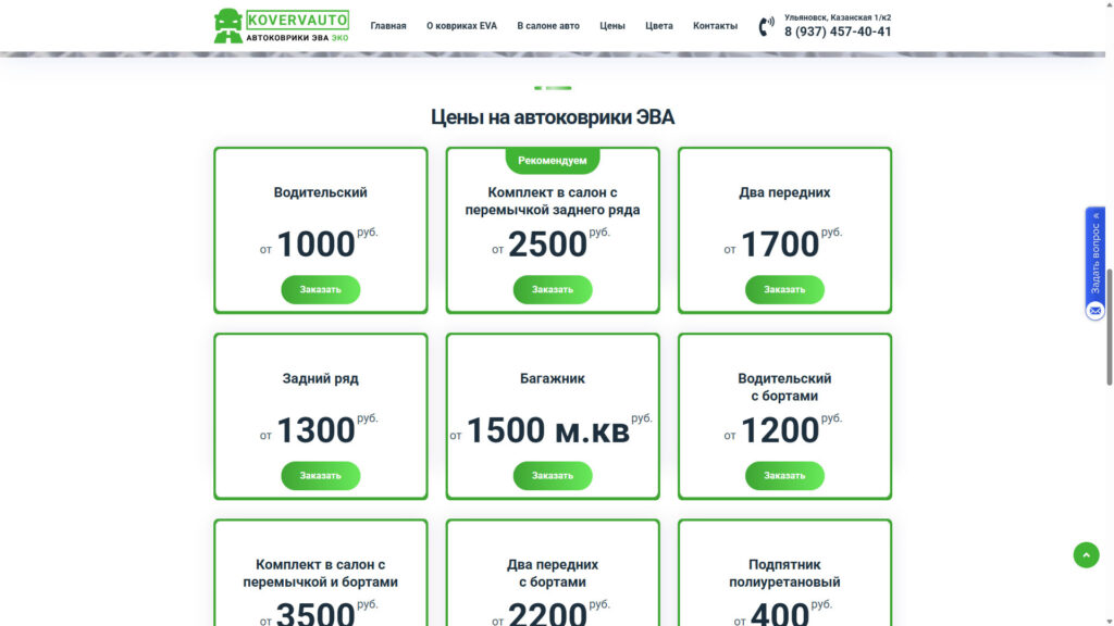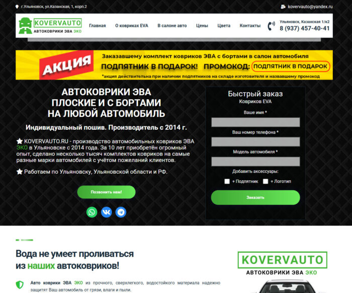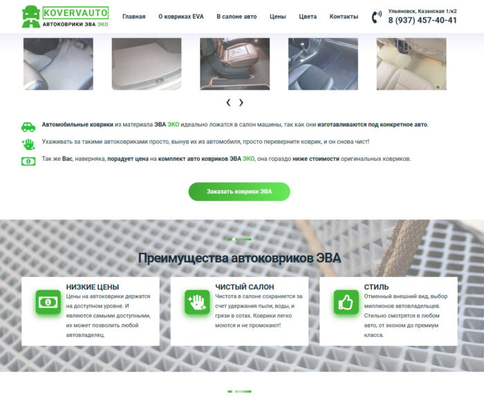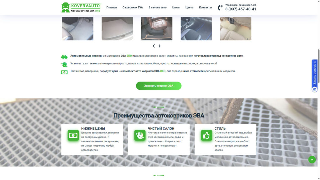 Дата окончания выполнения: 24.04.2017 Ссылка: https://kovervauto.ru/ Описание: Производство автомобильных ковриков Больше скриншотов: